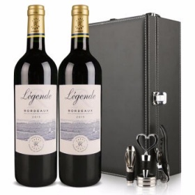 法国进口红酒 拉菲传奇波尔多干红葡萄酒 双支礼盒装带酒具 750ml*2瓶