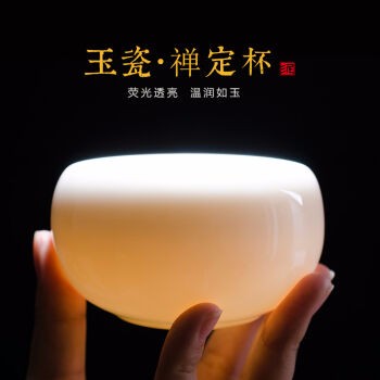 泥印 陶瓷 单杯主人杯白瓷个人杯品茗杯玉瓷茶杯禅定杯功夫茶杯羊脂白茶具杯子礼盒D53-06