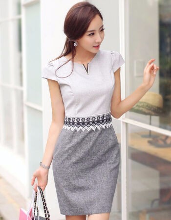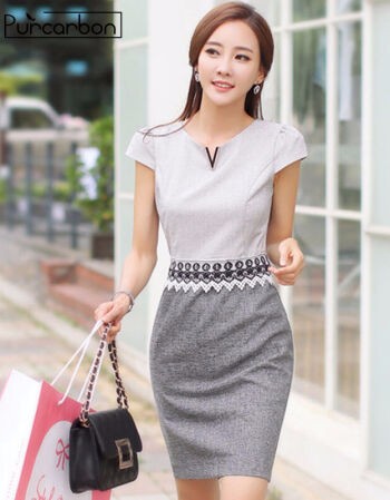 Purcarbon连衣裙2017春夏季新款韩版大码女装包臀短袖V领打底裙中长款裙子7821 灰色 M