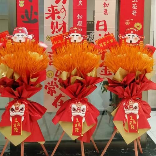 大麦开业花篮 财神爷送财 开业 乔迁 庆典花篮 财源滚滚 事业步步高升