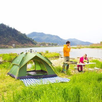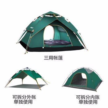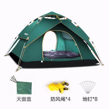 探险者全自动弹簧帐篷户外3-4人套装家庭防雨双人2人双层野营 墨绿色两用